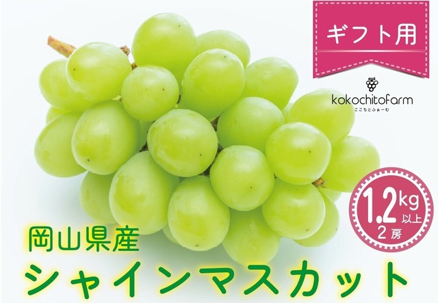 甘くてジューシーな岡山県産シャインマスカットの贅沢な贈り物。一房の中に詰まった果実はみずみずしく、爽やかな香りが口の中に広がります。贈り物としても最適なシャインマスカットは、果物好きの方に喜ばれること間違いなし。特別な日に、特別な方への贈り物として、この機会にぜひどうぞ。 ※ご注文を頂いた順に発送しておりますので、お届け日のご指定はお受けしておりません。 ※配達時間のご指定はお受けできます。画像を参考にして頂き、備考欄にご記入ください。ご記入がない場合は『配達時間指定なし』で発送させていただきます。 ===================== kokochitofarm【ここちとふぁーむ】は岡山県の北部に位置し、雨が少なく日照時間の長さと朝晩の寒暖差からおいしいぶどうが収穫できます。 『晴れの国岡山』から〈おいしい〉〈新鮮〉〈ていねいに育てた〉朝採れぶどうをお届けします! ===================== <kokocitofarmのこだわりのぶどう栽培> ①ぶどう畑に除草剤は使用しません! ②手間ひまかけて、農薬は最小限に! ③有機肥料による『いい土』づくり! 少しでもからだにやさしいぶどうをつくりたいので、ここちとふぁーむのぶどう畑に除草剤は使いません。 また、農薬の使用を最小限に抑え、できるだけ農薬に頼らず、ひとつひとつ手間ひまかけて丁寧に育てました。 おいしいぶどうを作るための土づくりには、落ち葉やカヤを使用し、有機物や微生物による自然の力で土壌環境を整える土づくりをおこなっています。 発送は朝採れの新鮮なぶどうを丁寧に箱詰めし、お届けします。 梱包に使用する緩衝材は、なるべく紙製の緩衝材やウッドパッキンを使用し、人にも自然にもやさしい販売を心がけています。 ◆品種について シャインマスカットはマスカットの香りとハリのある食感で皮ごと食べられるのが特徴です。 糖度が高く、お子さんから年配の方まで一番人気の品種です。 ※種なし品種ですが、天候等の影響によりまれに種が入る場合があります。 ◆ギフト商品とご自宅用商品の違いについて ギフト商品は房の形や粒の大きさの整ったぶどうを厳選した特選品になります。 ご自宅用商品はギフト商品に比べ、房や粒が小さかったり、房の形が整っていないものになります。 すべてのぶどうを丁寧に育てていますので、味に関して大きな違いはありません。 ギフト商品は化粧箱や緩衝材もギフト専用のものを使用し、贈り物に最適な商品です。 ※ギフト商品はのしの対応をお受けしております。ご希望の場合は備考欄にご記入ください。 ※ご自宅用商品はのし対応をしておりません。 ※化粧箱で発送しますので、包装はしておりません。 ◆数量の目安について 1.2㎏以上…ギフト商品:2房、ご自宅用商品:2~3房 2.2㎏以上…ギフト商品:3~4房、ご自宅用商品:3~5房 ※房数の指定はできません。 ◆商品のお届けと注意点について ・ぶどうの生育状況、天候によってお届けまでにお時間をいただく場合がございます。 ・細心の注意を払い梱包をしておりますが、特に長時間の輸送中に房から粒が外れてしまうことがございます。品質に大きな問題がない範囲での房落ちについては、何卒ご容赦いただきますようお願いいたします。 ◆保存方法 冷蔵庫に入れ、お早めにお食べください。