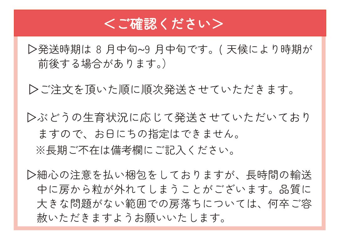 ・ぶどうの生育状況、天候によってお届けまでにお時間をいただく場合がございます。