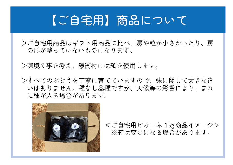 ご自宅用商品はギフト商品に比べ、房や粒が小さかったり、房の形が整っていないものになります。