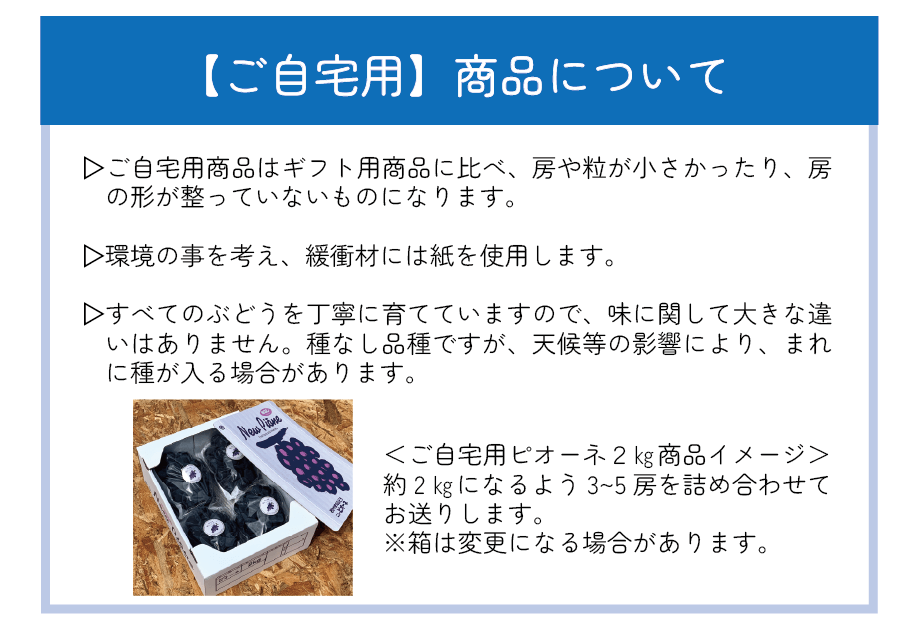 ご自宅用商品はギフト商品に比べ、房や粒が小さかったり、房の形が整っていないものになります。